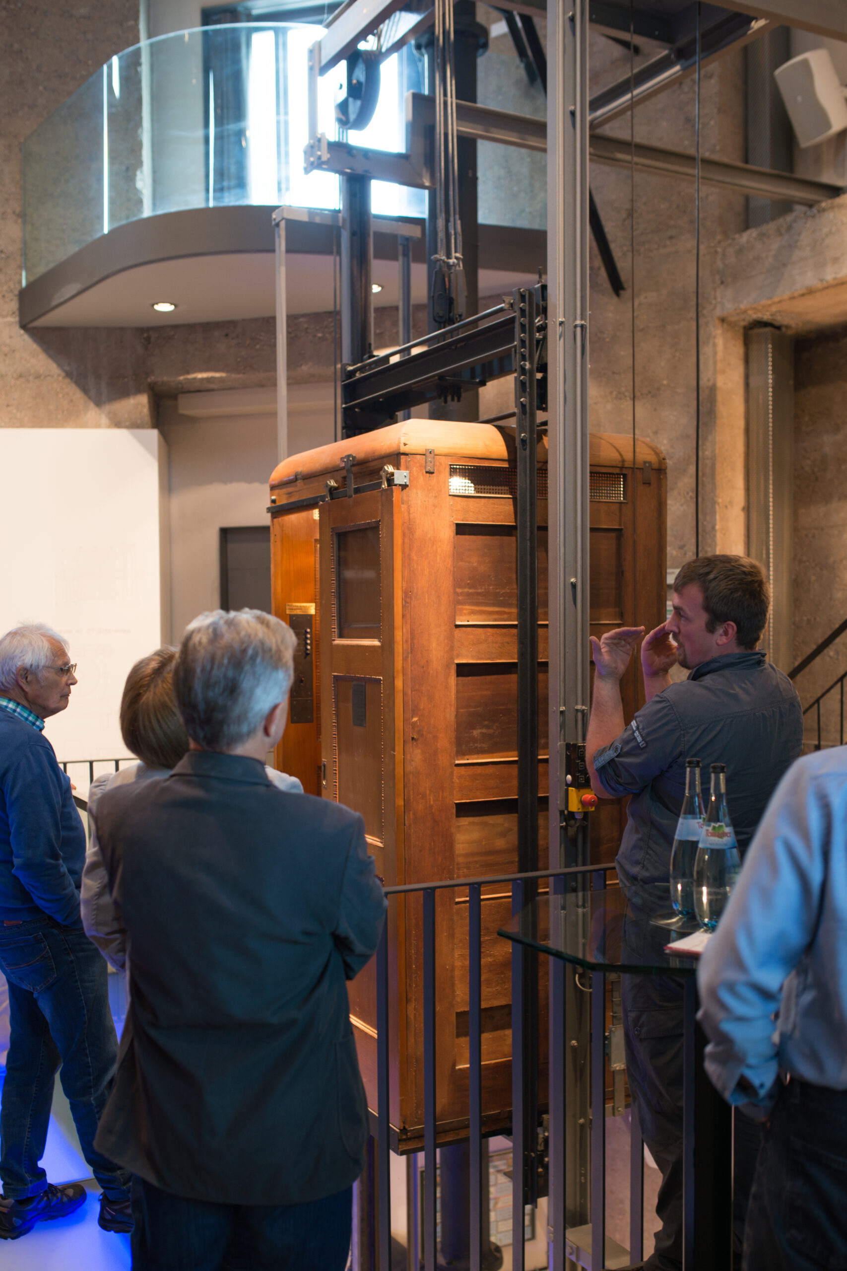 Ungewöhnlich ist nicht nur das »Museumsgebäude« – der Wasserturm in Seckenheim genannt »Glatzkopp«, sondern auch die in Europa einmaligen Ausstellungsstücke, die mit ihrer vertikalen Ausprägung hervorragend in den Turm passen: Aufzüge. Dementsprechend hingen die Teilnehmer ab der ersten Minute gebannt an Stefan Lochbühlers Lippen, der es sich nicht nehmen ließ, selbst von der Verbindung seiner Familien- und Unternehmensgeschichte mit dem Wasserturm und der Entstehung des Aufzugmuseums zu berichten.