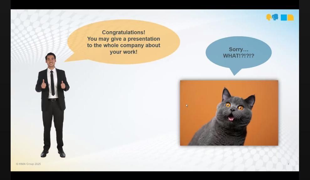 Nach einem kurzen Einblick in die Arbeitswelt der drei, das Mitarbeiterinnennetzwerk Women@HIMA und die Mitarbeiter:innen-Initiative „Stronger together“ gab es eine „journey“ durch die optimale Präsentation bzw. die optimale Vorbereitung einer Präsentation – vom Intro über „message“ und „structure“ bis hin zu „design“ und „presentation“.