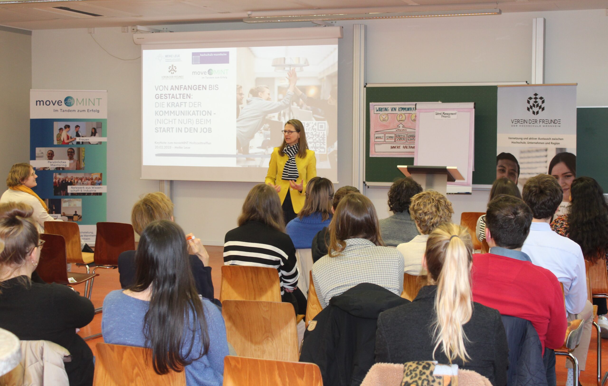 Beim moveMINT-Halbzeittreffen im Februar nahm Keynote-Speakerin Meike Leue Mentees und Mentor:innen mit auf eine aktive und intensive Entdeckungsreise in die Welt von Gestaltungsspielräumen und (Un-)Zufriedenheitsformeln, Lernkurven und Zusammenhängen zwischen Motivation und Handeln im Berufsleben und darüber hinaus.