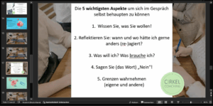 Ein roter Faden im Programm war das wichtige Thema Kommunikation: selbstsicher, authentisch, zielführend – auch um den eigenen Standpunkt und die eigenen Wünsche zu hinterfragen, zu (er)kennen und verfolgen bzw. erfüllen zu können.