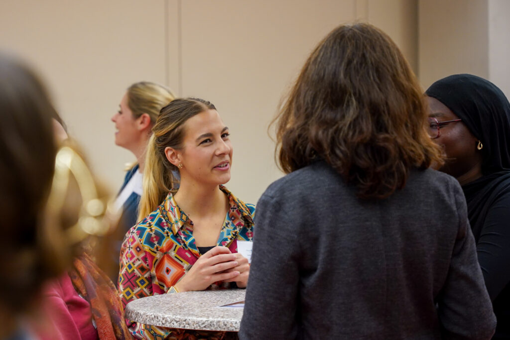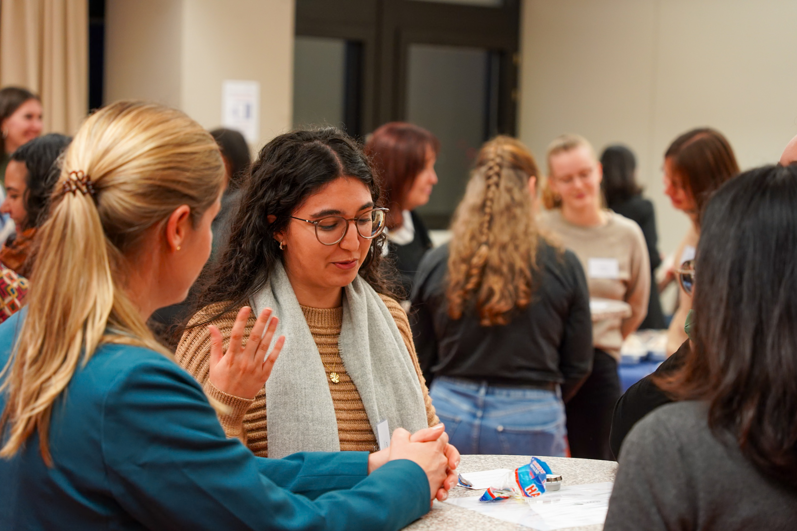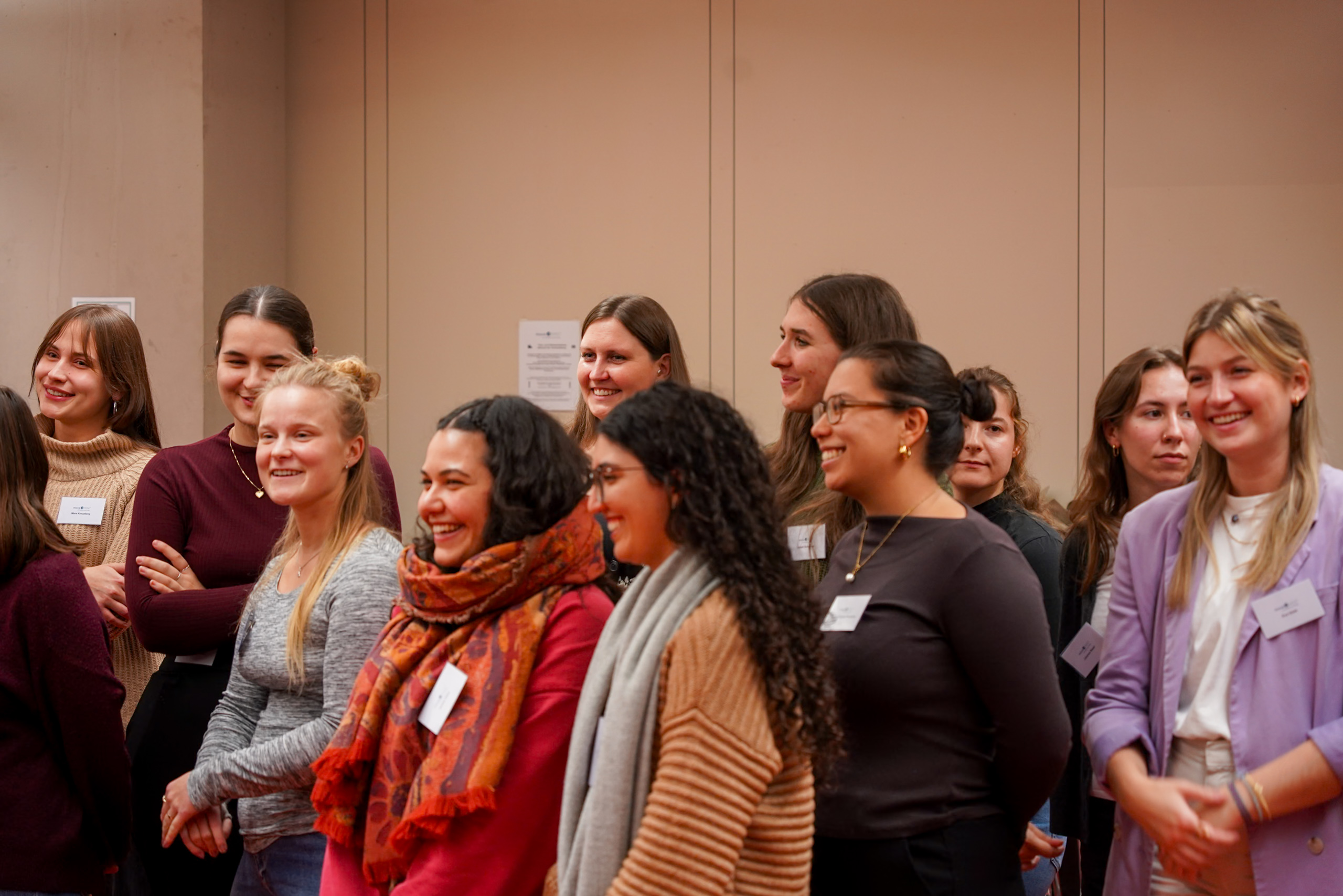 Nach der Jubiläumsfeier zum 5-jährigen Bestehen des Programms im Sommer 2025, zu der ebenfalls viele moveMINT-Alumnae zu Gast waren, zeigte sich auch zum Start der neuen Runde, wie gut das Mentoring-Netzwerk inzwischen funktioniert. Vor dem offiziellen Beginn der Eröffnungsveranstaltung hatten die neuen Mentees Zeit, anzukommen und mit einer Handvoll Mentees der letzten Runde in den Austausch zu gehen. Gesprächsthemen gab es viele, das Eis war sofort gebrochen und besonders glücklich gefügt hat sich, dass eine der letztjährigen Mentees die neuen Mentees ihrer Mentorin, die sich spontan abmelden musste, in Empfang nehmen konnte.