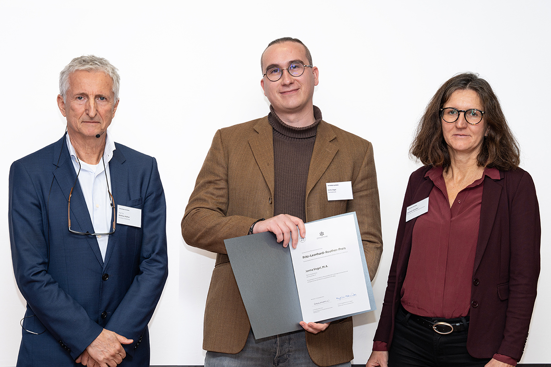 Susanne Hammer, die nur wenige Tage zuvor zur neuen VdF-Präsidentin gewählt wurde, überreichte den 47. Fritz-Leonhard-Reuther Preis an Jorma Vogal (Master, Soziale Arbeit). Mit seiner Master-Thesis „Konstruktion von rechts. Professionelle Ideologie und ideologische Profession in ihrer Wechselwirkung“ wurde Herr Vogel als jahrgangsbester Absolvent der Hochschule Mannheim ausgezeichnet. Einen Einblick in seine Arbeit, seine Zukunftspläne etc. erhalten Sie im bald folgenden FLR-Preisträger-Interview.